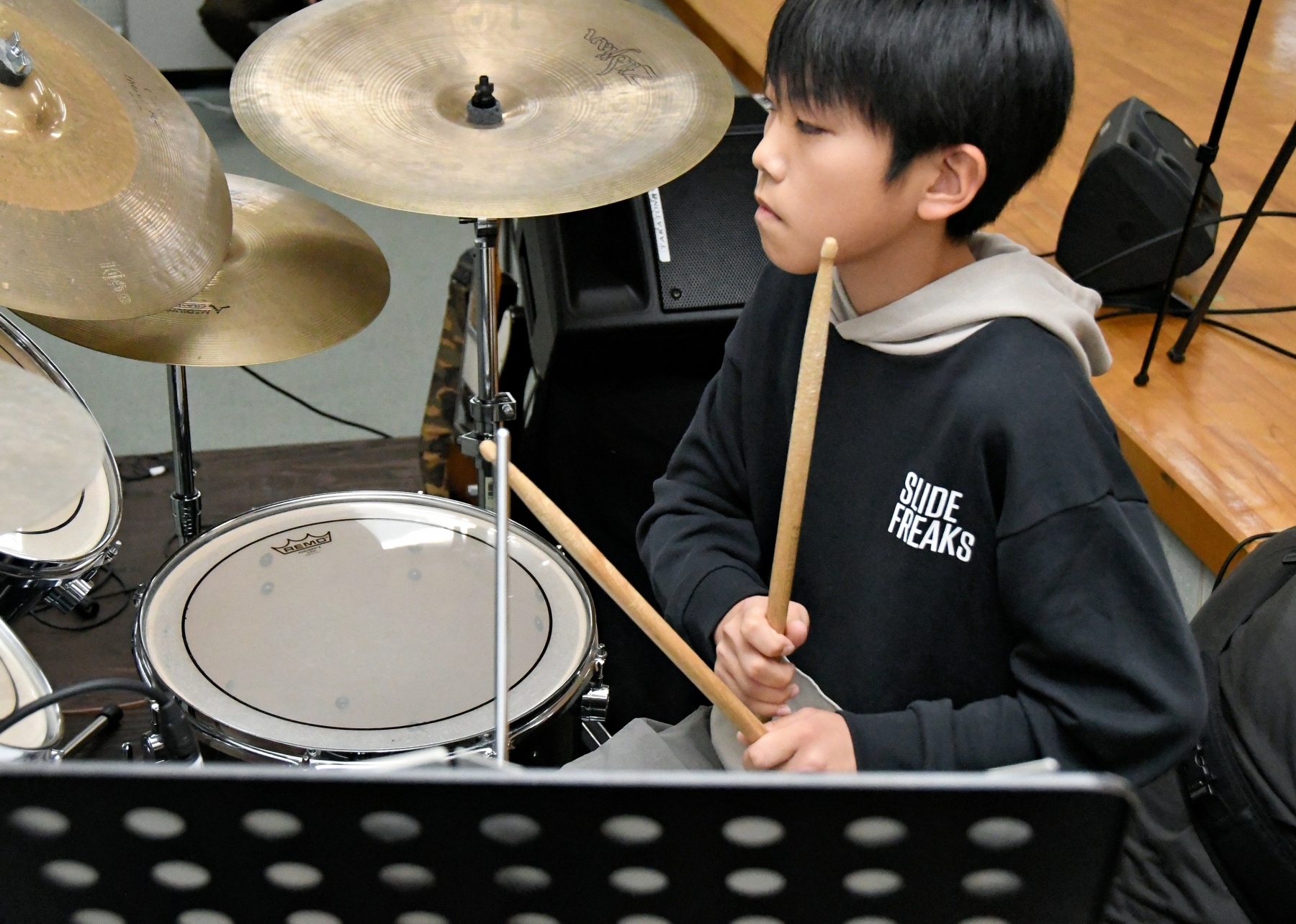 ドラムは、パターンを覚えて、好きな歌に合わせて叩けるので、楽しいです。